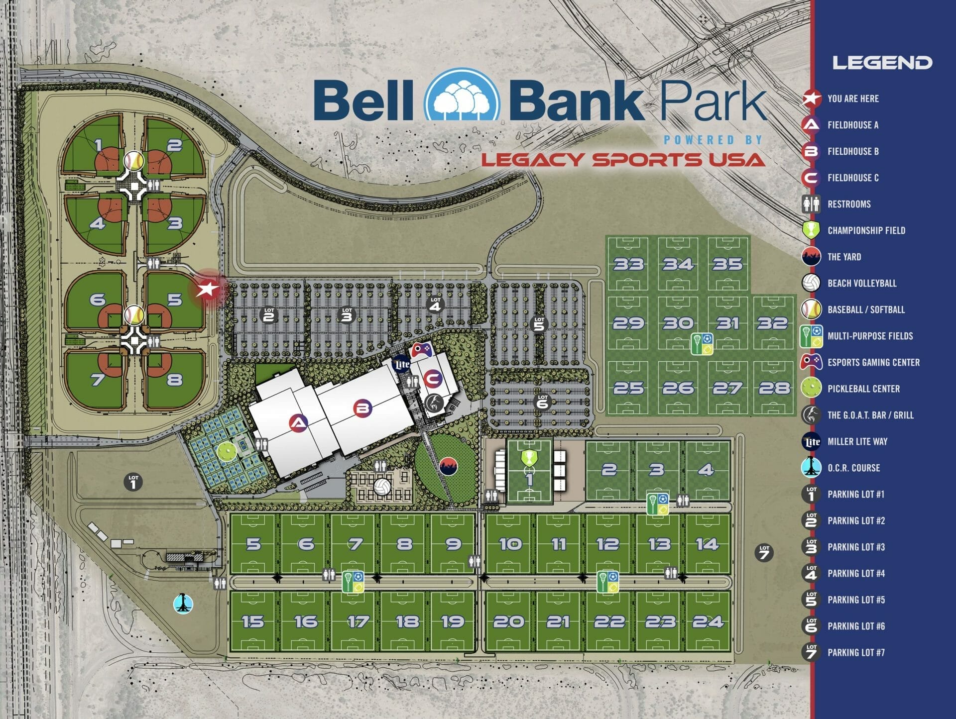 PARK INFORMATION: All activities take place at Bell Bank Park by Legacy Sports USA on fields 6 through 9. View Park Map / Field Locations